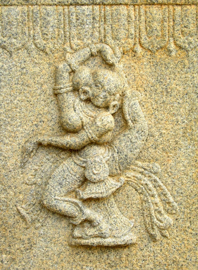 – Danseuse en tentative d’Eka Pāda Sirsāsana (posture du pied derrière la tête), Shravanabelagola, Karnataka, Inde (août 2016)