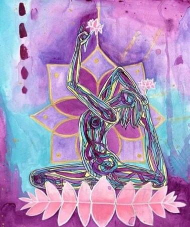 Peinture : Eka Pada Rajakapotāsana, « Lakshmi blossoming heart » (Lakshmi au coeur fleurissant), Eliza Lynn Tobin