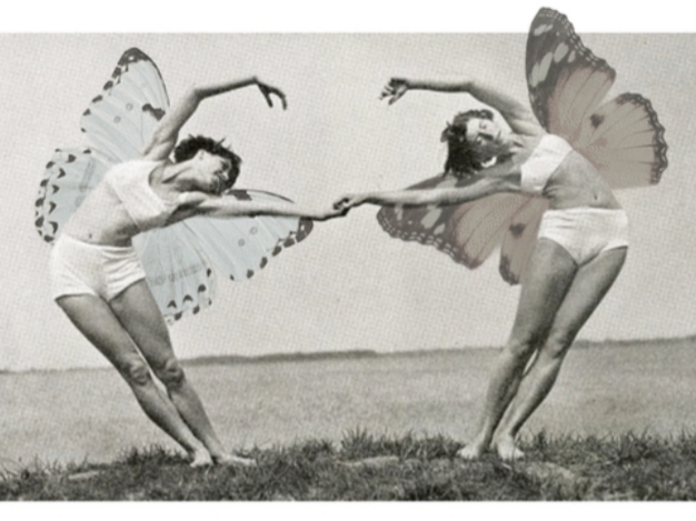 Collage et gif : « Ens creurem que som papallones fins que aconseguim volar » (« Nous penserons que nous sommes des papillons jusqu’à ce que nous parvenions à voler »), Nú Larruy