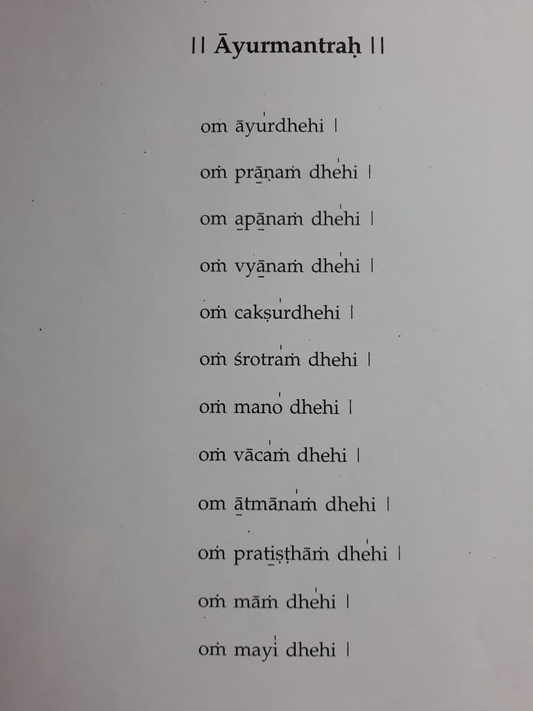 Photo de l’Āyurmantrah retrouvé ce matin dans mes archives pour vérifier