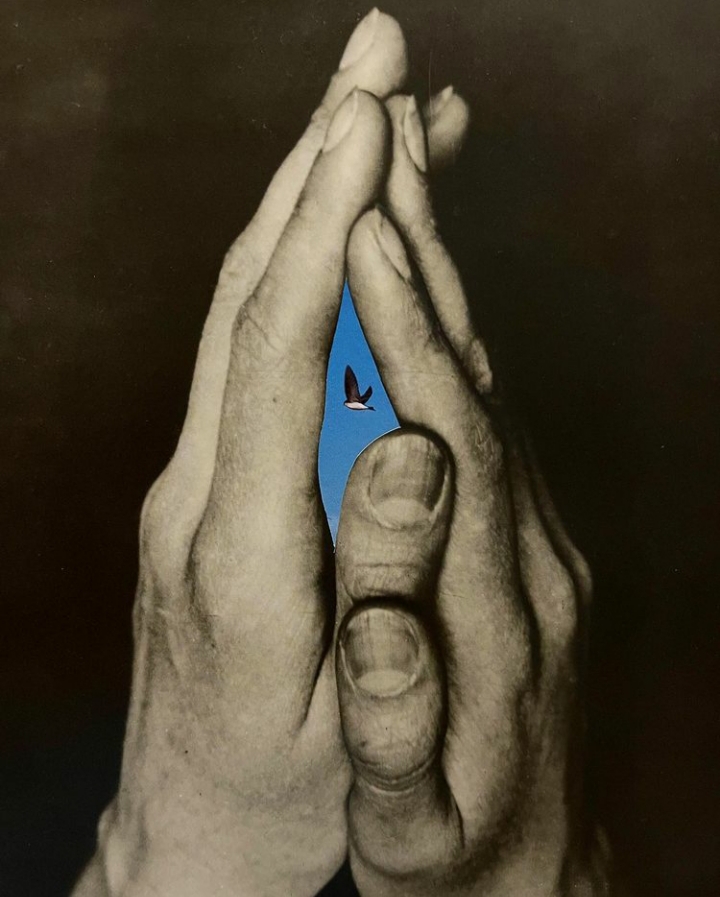 Collage : Anjali mudra, Fumiko Oda (sur la base d’une photo de Albert Renger-Patzsch)